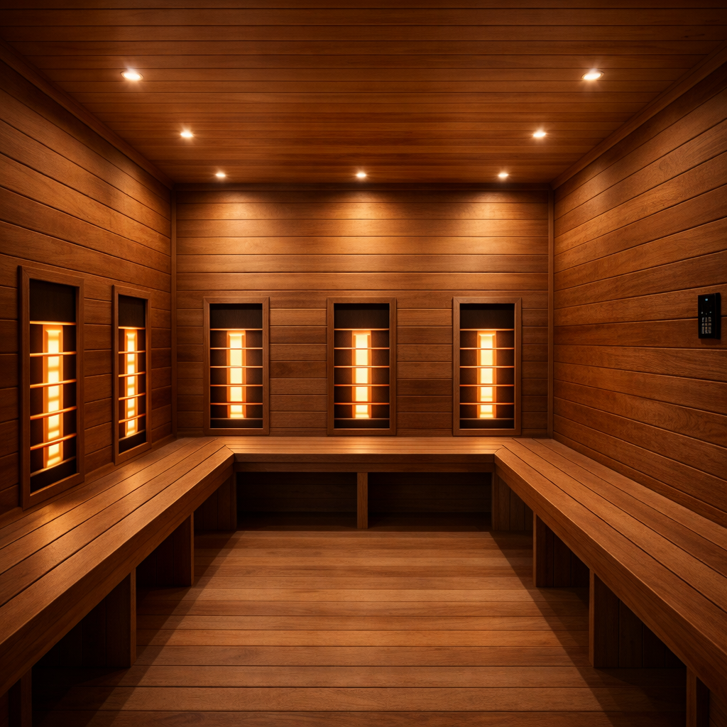 La cabine infrarouge est équipée de panneaux chauffants infrarouges carbone répartis sur les parois avant, latérales et arrière. Cette configuration assure une diffusion homogène de la chaleur et un réchauffement progressif du corps, sans vapeur, sans pierres et sans poêle traditionnel. L’expérience est douce, confortable et adaptée à un usage régulier.